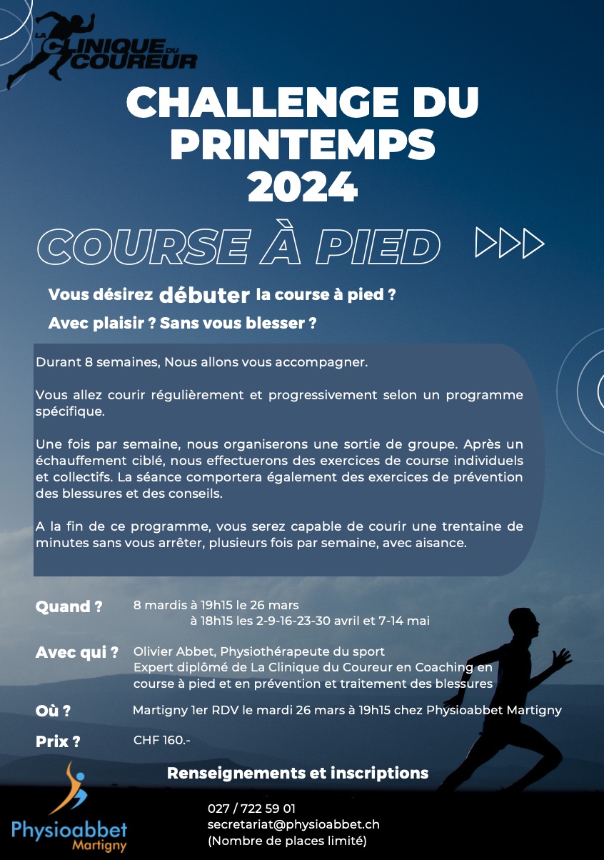 Depuis lors, il est notamment intervenu à la Journée valaisanne de la Physiothérapie et a fait venir à Fully Blaise Dubois, fondateur et président de la Clinique du Coureur, en organisant 3 journées de formation de base.